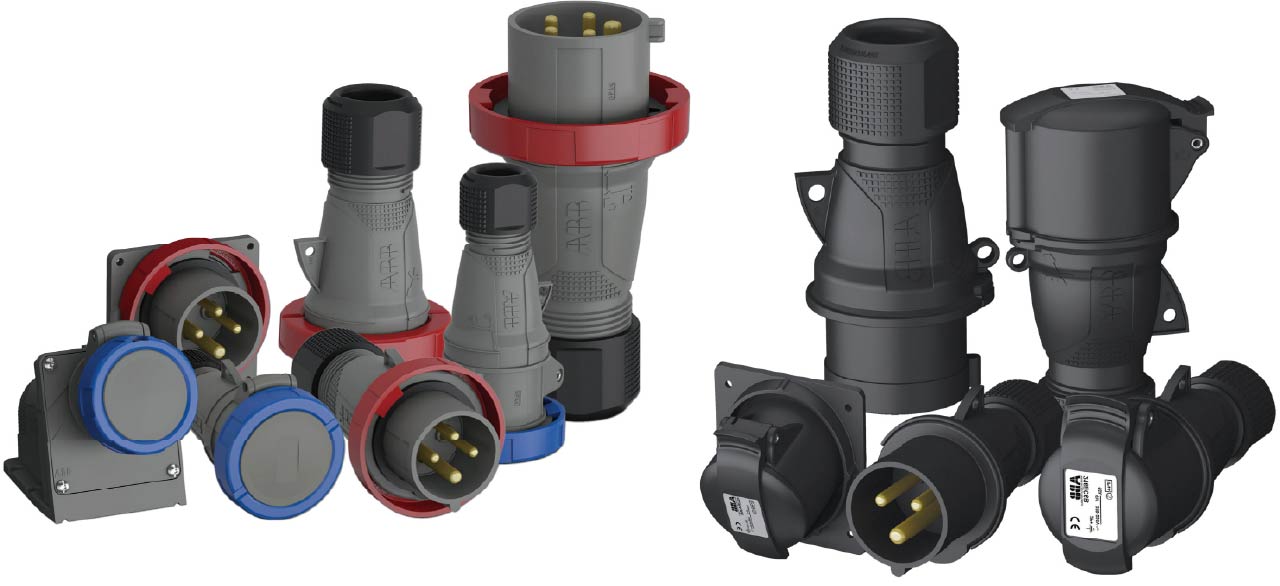 ABB社の産業用プラグ&ソケット (IP&S) は、安全性、信頼性、耐久性が重視される用途向けに60年以上も高い評価を受けています。IEC 60309規格に適合して設計されており、高品質で堅牢な人間工学に基づいたデザイン、IP44またはP67の防水性、最大125Aの大電流ならびに690Vの高電圧が特長で、機械設備、装置、データセンター、食品・飲料産業、インフラ設備、建設現場、鉱山、冷凍コンテナへの接続用など、様々な市場で採用されています。