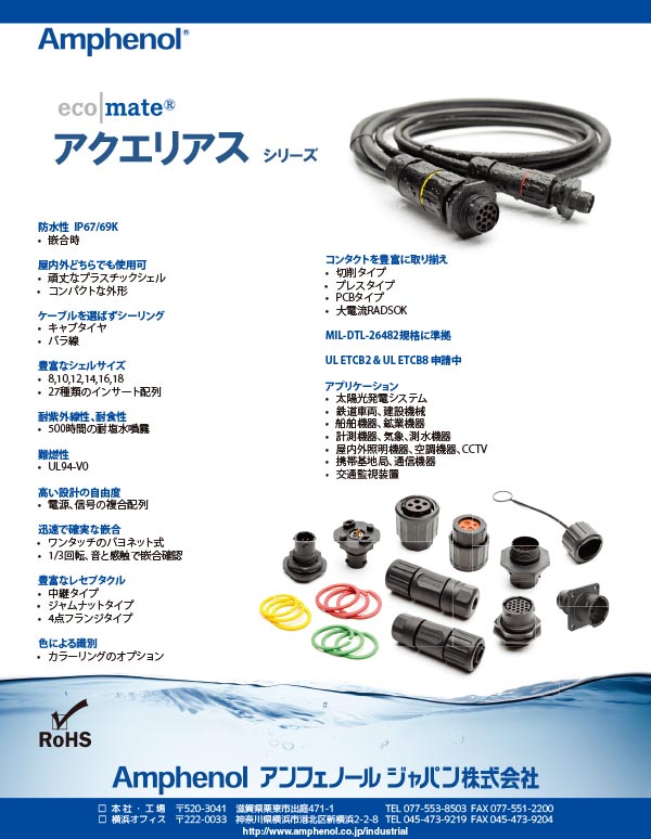 用途/市場丸型コネクタ角型コネクタ 同軸コネクタ 光コネクタ大電流コネクタメディアコンバータ電源コンバータイーサネットスイッチ ケーブル 端子台 ジャンクションモジュール バックシェル、システムアタッチメント アセンブリ その他