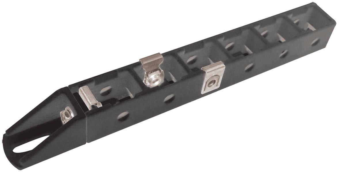 ABS2225は、航空機や車両のケーブルハーネス束の取り回しを補助する目的で設計された、頑強で軽量なコンポジット製のマウントトラックです。