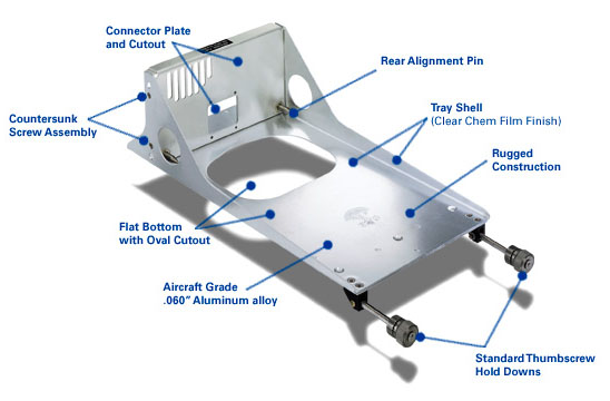 ARINC404Aトレイは、最新鋭の製造施設で高品質な航空機グレードの材料を使用して設計・製造されており、ARINC404Aの仕様を満足あるいは上回る性能を持ち、民間および防衛航空機のすべての要求仕様に適合しています。