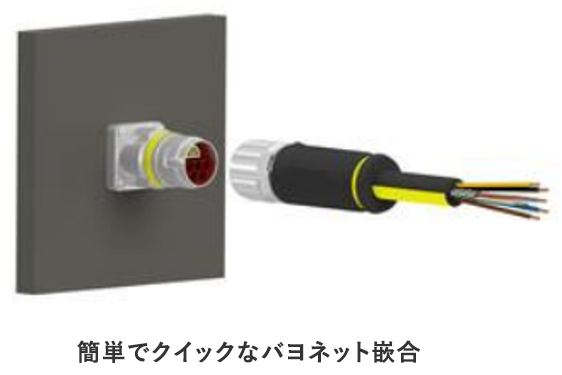 クイックなバヨネット嵌合のため、操作性に優れており、IP67の防水性、オプションにてEMIシールドも提供します。