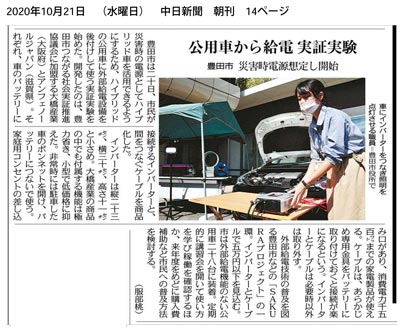 2020年10月20日の豊田市長による記者会見において、ハイブリット車の後付外部給電設備の活用に向けた実証の開始の説明があり、弊社の取り組みも紹介されました。