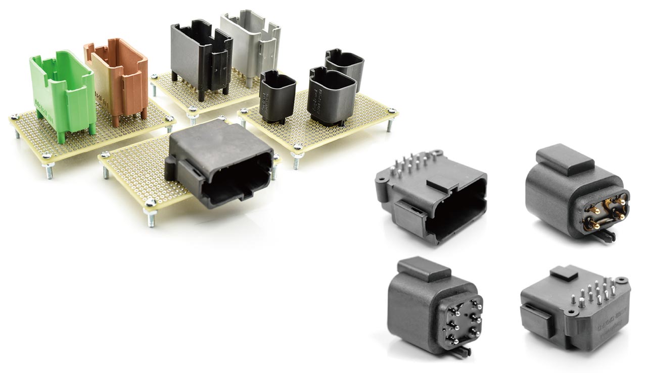 AT-Board Lock シリーズは、基板実装用に開発されたATレセプタクルコネクタです。AT シリーズの性能を引き継いでおりますので、コンパクト、高耐久、低背設計、軽量な基板実装ソリューションとして、建機、重機、輸送車両、産業機器、オフロード車などの過酷な環境下での電源供給、データ送信向けに最適です。