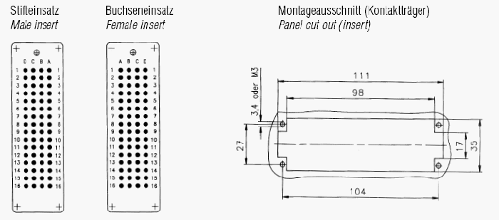 heavy|mate® - C146 D 圧着プレスコンタクト用、64+PE(2 x PE接続*)、メスインサート