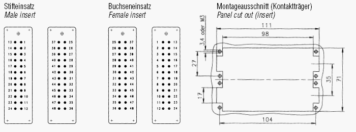 heavy|mate® - C146 E 圧着プレスコンタクト用、48+PE、オスインサート組合せ | ||