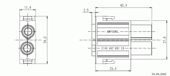heavy|mate® - C146 M 2芯パワーモジュール、ピン(3.6mm圧着切削コンタクト用) | ||