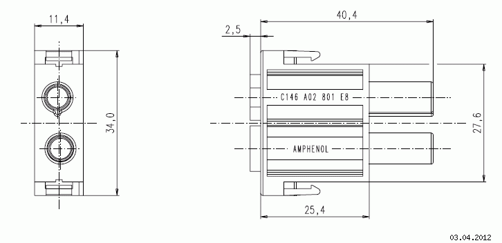 heavy|mate® - C146 M 2芯パワーモジュール、ソケット(3.6mm圧着切削コンタクト用) | ||