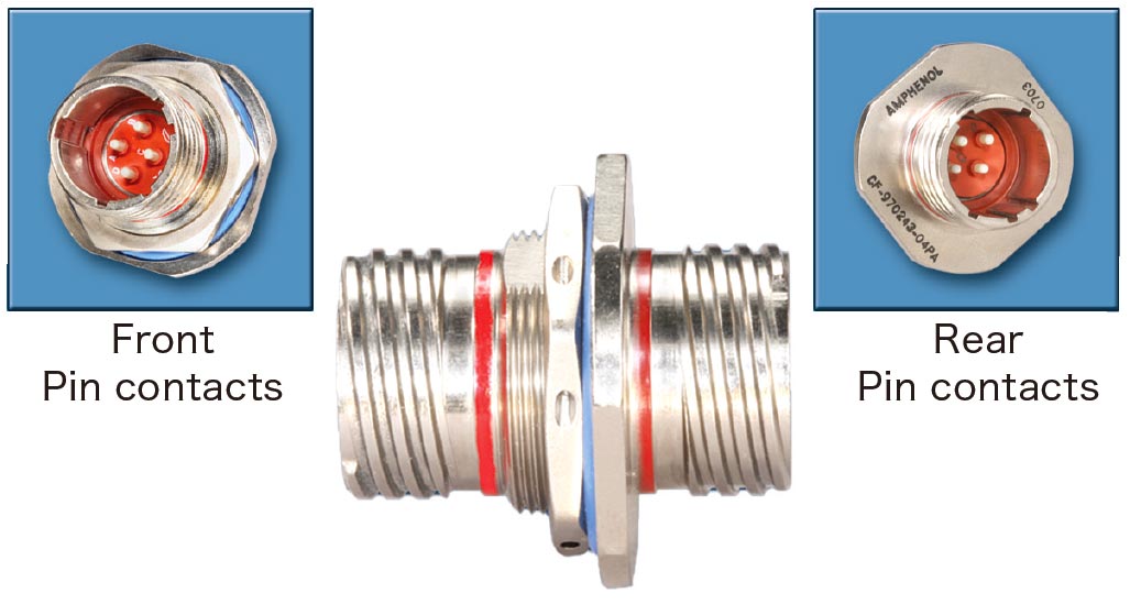 航空機の厳しい使用環境に対して実績豊富なCF38999光コネクタをベースに設計され、バルクヘッドの一部として機能するよう高気密(ハーメチック)仕様にグレードアップした製品です。Oリングを備えたジャムナットスタイルが高い気密性とバルクヘッドへの簡単な付け外しを両立させます。