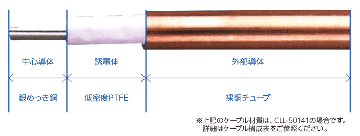 Coppersol CLL カタログ Coppersol CLLシリーズは、標準的なセミリジッドケーブルよりもシールド効果を高めるために、チューブ状の薄い銅を外部導体に採用しています。低密度PTFEを誘電体に使うことで、低挿入損失を実現しています。本ケーブルは、25年前に開発され、幅広い防衛向け装置に実績があります。 特長 標準的なセミリジッドケーブルよりも低損失 優れたシールド効果 低PIM特性 安定した挿入損失、VSWR、位相特性 耐腐食性 ケーブル構造図 Coppersol CLL カタログ お問合せ