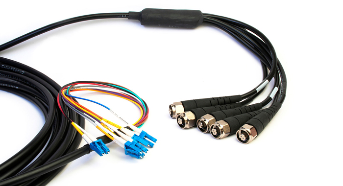 光ファイバトランクは、1本のケーブルに、最大で48対の光ファイバケーブルを接続する光ファイバソリューションです。この光ファイバトランク1本で、塔上に配線盤を設置することなく、複数のRRHへの接続が可能になります。