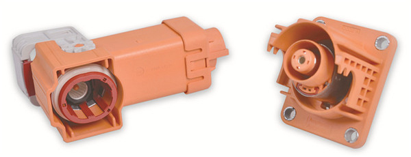 HVC1P12(90°)は、バッテリーシステムなどの電動パワートレイン向けに開発された、1芯、ライトアングル形状の樹脂製高電圧EVコネクタです。定格電圧1000V DC、定格電流は最大440A、適用電線サイズ50mm²~120mm²に対応しています。