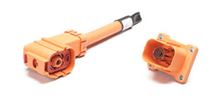 HVC1P80(90°)は、バッテリーシステムなどの電動パワートレイン向けに開発された、1芯、ライトアングル形状の樹脂製高電圧EVコネクタです。定格電圧1000V DC、定格電流は最大220A、適用電線サイズ25mm²~50mm²に対応しています。