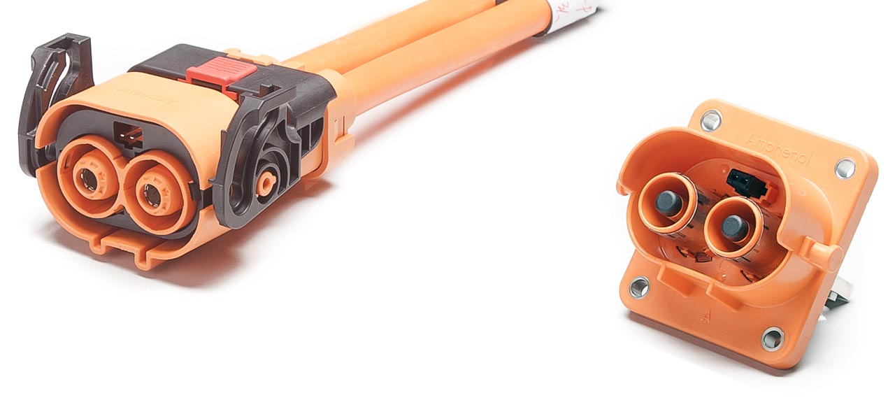 HVC2P60は、PDU、インバータ、バッテリーシステムなどの電動パワートレイン向けに開発された、2芯、ストレート形状の樹脂製高電圧EVコネクタです。定格電圧800V DC、定格電流は最大125A、適用電線サイズ16mm²、25mm²に対応しています。