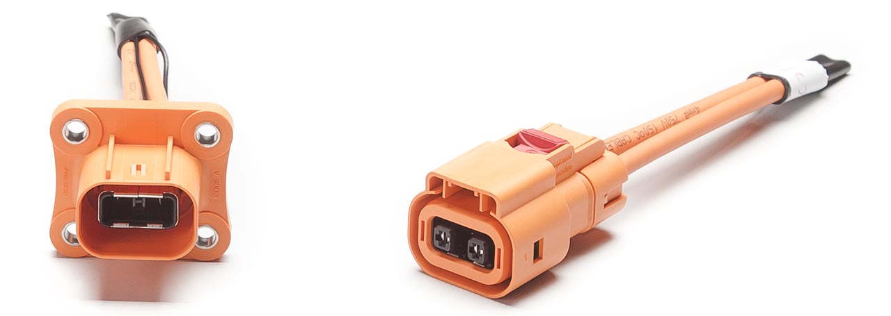 HVC2P63は、バッテリーシステムなどの幅広いEV/HEV用途向けに開発された、2芯、ストレート形状の樹脂製高電圧EVコネクタです。定格電圧800V DC、定格電流は最大45A、適用電線サイズ2.5mm²~6mm²に対応しています。
