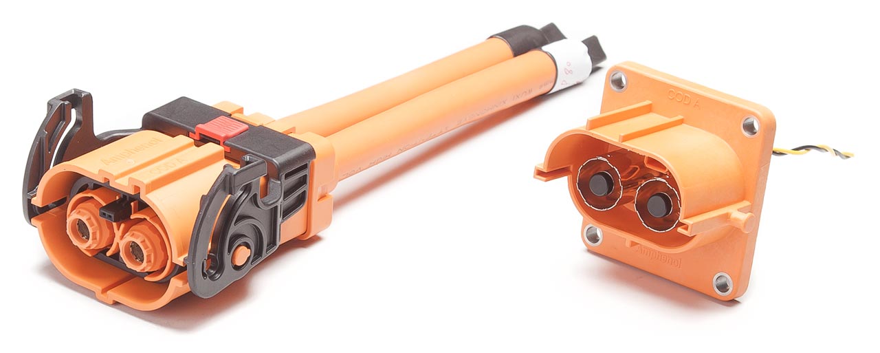 HVC2P80は、PDU、インバータ、バッテリーシステムなどの電動パワートレイン向けに開発された、2芯、ストレート形状の樹脂製高電圧EVコネクタです。定格電圧1000V DC、定格電流は最大220A、適用電線サイズ25mm²~50mm²に対応しています。