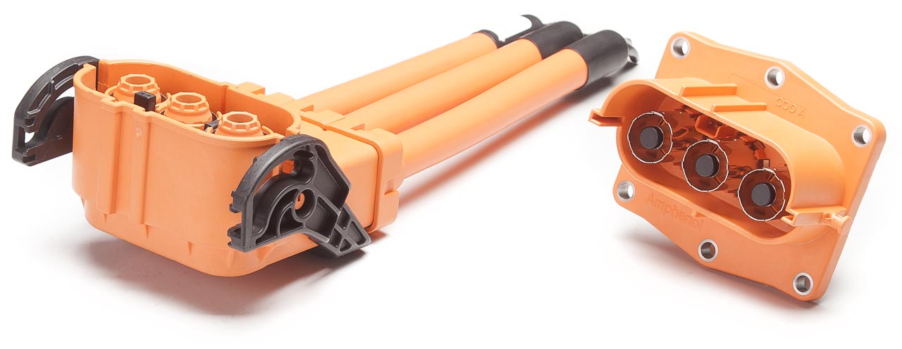 HVC3P80(90°)は、モータ、MCU、インバータ、バッテリーシステムなどの電動パワートレイン向けに開発された、3芯、ライトアングル形状の樹脂製高電圧EVコネクタです。定格電圧1000V DC、定格電流は最大220A、適用電線サイズ25mm²~50mm²に対応しています。