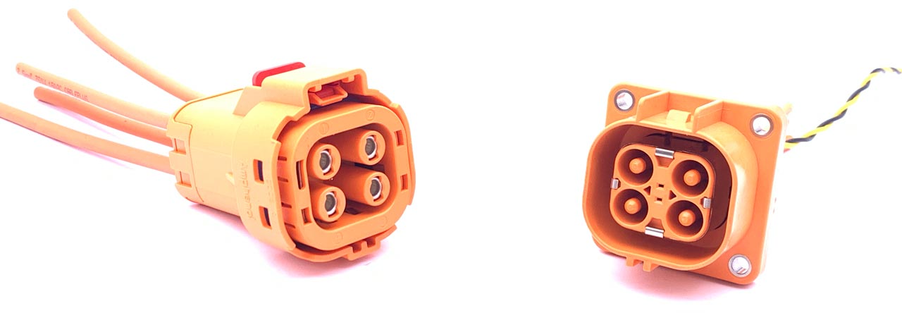 HVC4P36は、バッテリーシステムなどの幅広いEV/HEV用途向けに開発された、4芯、ストレート形状の樹脂製高電圧EVコネクタです。定格電圧1000V DC、定格電流は最大50A、適用電線サイズ2.5mm²~6mm²に対応しています。
