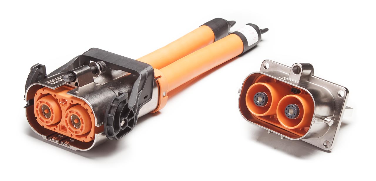 HVMC2P14 は、PDU、インバータ、バッテリーシステムなどの電動パワートレイン向けに開発された、2芯、ストレート形状のメタル製高電圧EVコネクタです。定格電圧1000V DC、定格電流は最大450A、適用電線サイズ70mm²~120mm²に対応しています。