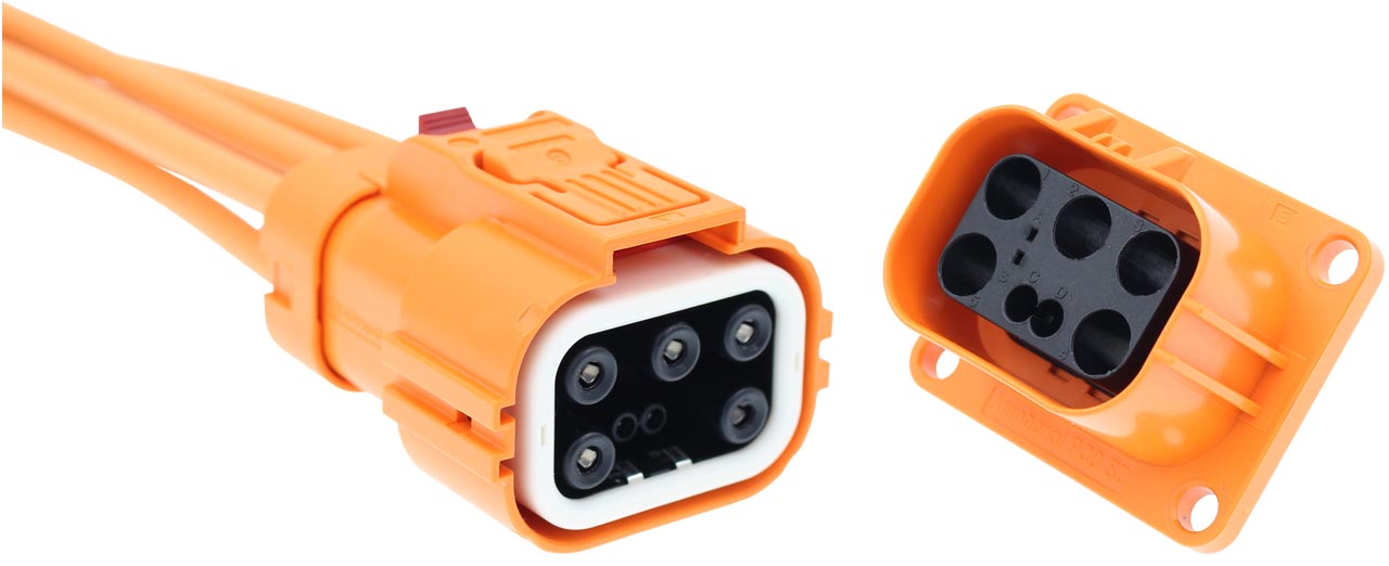 HVSL365 シリーズは、バッテリーシステムなどの幅広いEV/HEV用途向けに開発された、5芯、ストレート形状の樹脂製高電圧EVコネクタです。定格電圧1000V DC、定格電流は最大40A、適用電線サイズ2.5mm²~6mm²に対応しています。