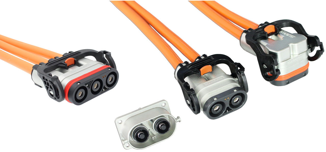 HVSLS600 シリーズは、PDU、インバータ、バッテリーシステムなどの電動パワートレイン向けに開発された、2芯、3芯のメタル製高電圧EVコネクタです。形状はストレートタイプと90°アングルタイプを取り揃え、定格電圧1000V DC、定格電流は最大120A、適用電線サイズ70mm²、95mm²に対応しています。