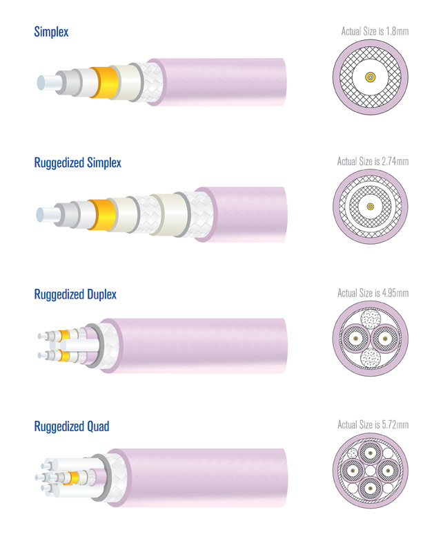 ノンタイトバッファーケーブル構造のため、市販の汎用的な光コンタクトおよびコネクタと互換性を有します。LITEflight® EPは、最も要求の厳しい用途の要件を満足するよう、複数のサイズ、ケーブル構成を展開しており、最大260°Cの温度環境下にて使用可能です。