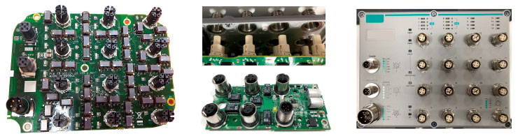 M12シリーズ Xコードコネクタは、CAT6AおよびIEC61076-2-109に適合した10Gbpsの高速イーサネット通信を可能にします。シールドブレードで確実に保護された4ペアで構成されるコンパクトな筐体は、過酷な環境でも安定した高速データ伝送を可能にし、優れたパフォーマンスを発揮します。産業用カメラで実績があります。同時に使われることが多いM8コネクタもご提供できます。
