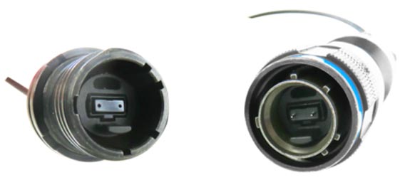MIL-DTL-38999 シリーズIIIのサイズ13のコネクタシェルに、標準のMPOパッチケーブルを通すことで、衝撃、塵埃、液体の侵入を完全シャットアウトすることができる耐環境型MPO接続コネクタです。