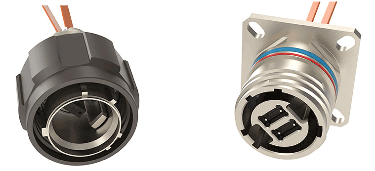 MTC-HDシリーズは、MIL-DTL-38999準拠の筐体とMTフェルールをベースとした最新の高密度光コネクタで、比類なきファイバー収容力と堅牢性を両立しました。最大で10個のMTフェルールを収容可能で、1フェルールあたり48芯に対応。結果として、1コネクタで最大480芯という、VITA87(最大192芯)を大きく上回る収容力を実現します。この圧倒的な芯数こそが、限られたスペースに膨大な光リンクを収める必要がある航空機、艦艇、ミサイルシステムなど、防衛特有のアプリケーションにおける決定的な差別化要因です。