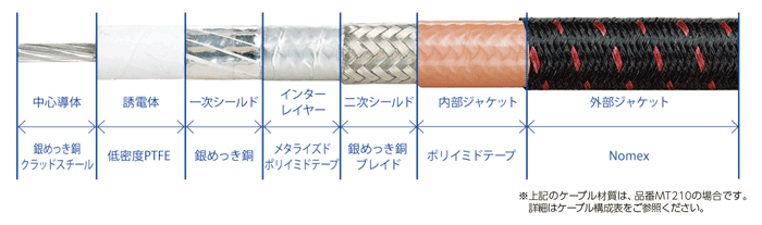 - 低挿入損失、広帯域、防湿性、摩擦に強いNomex材ジャケットを採用