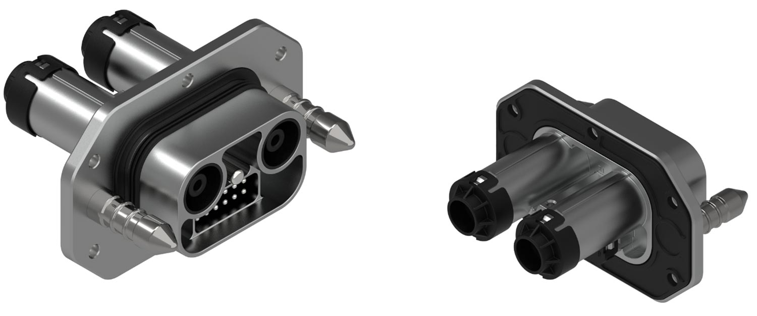 バッテリースワップ用のコネクタです。X、Y方向に±6mm のズレを吸収、Z方向に+0/-10mmのフローティングで、素早くバッテリーを交換できます。強い振動や衝撃に耐える強固なハウジングで、最大10,000回の嵌合を保証します。