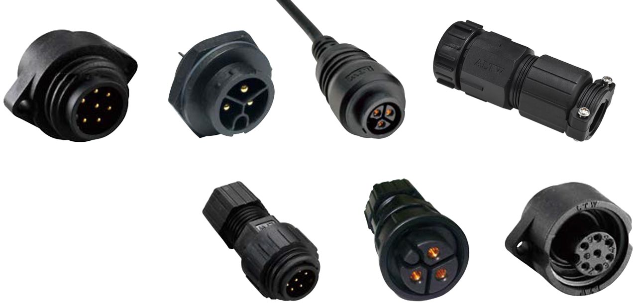 PW シリーズは、8A~50Aまで対応した樹脂製の防水電源コネクタです。IP67の嵌合時防水、500回の嵌合耐久性を満足しており、プラグは現場組立タイプのため、作業性にも優れています。