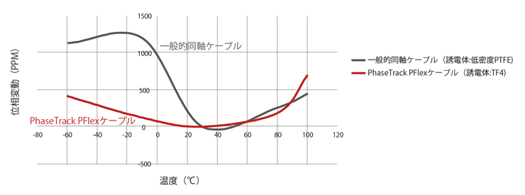Phase Track PFlex カタログ Phase Track PFlex シリーズは、TFlex シリーズの誘電体にTF4™を使用した位相安定ケーブルです。セミリジッドと同等の低損失特性を維持しながらフレキシブル化したうえで、定性した位相を得ることが可能です。機器内部など限られたスペースで安定した位相安定性能が求められる用途に最適です。 特長 優れた柔軟性 低損失 優れた位相安定性 ケーブル構造図 位相安定性 -温度変化に伴う位相変動 Phase Track PFlex カタログ お問合せ