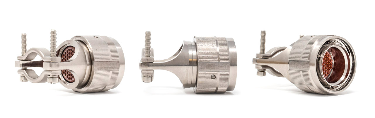 ストレインリリーフ一体型 カタログ 圧着 D38999コネクタのプラグシェルとストレインリリーフを一体化させています。 シェルとストレインリリーフは一つの加工品として設計しており、別途ストレインリリーフの手配は不要です。この一体構造により、省スペースと軽量化に貢献するばかりでなく、予期しないストレインリリーフの緩みや離脱という心配が完全になくなります。 シェル材質はアルミニウムおよびステンレスチール、めっきはD38999規格に準じて対応可能です。 ストレインリリーフ一体型 データシート お問合せ