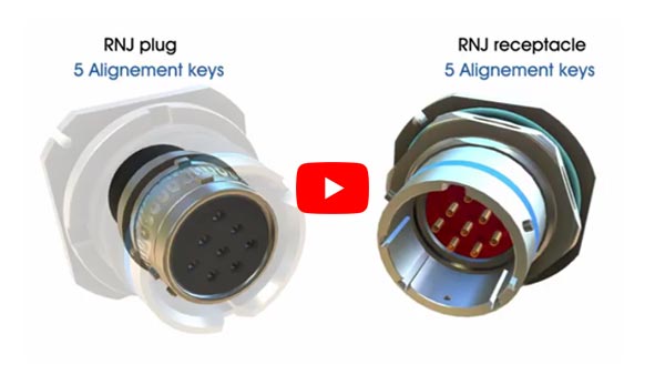 RNJ シリーズ は、フローティング構造を備えた、MIL-DTL-38999準拠のラック&パネルコネクタです。パネル間最小32mmで接続できる構造のため、システムの大幅な省スペース化が図れます。