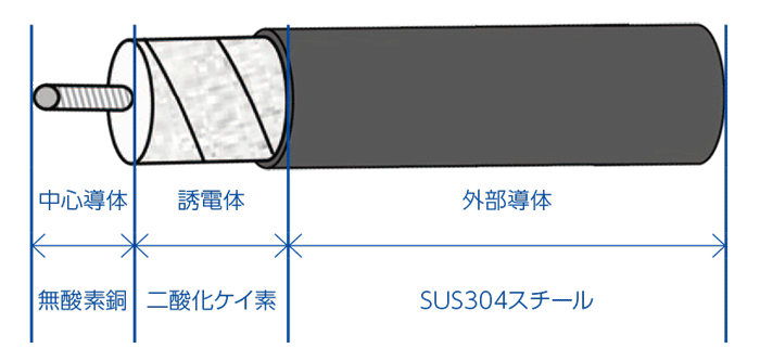 SiO2 シリーズは、誘電体に高純度のSiO2(二酸化ケイ素)を用い、外部導体にSUS304スチール(クロム・ニッケル合金)を採用したセミリジッドケーブルです。これにより、温度変化による位相変動を最小に抑え、極めて広い温度環境(-273℃~+1000℃)と最大300Mradまでの耐放射線特性を提供します。