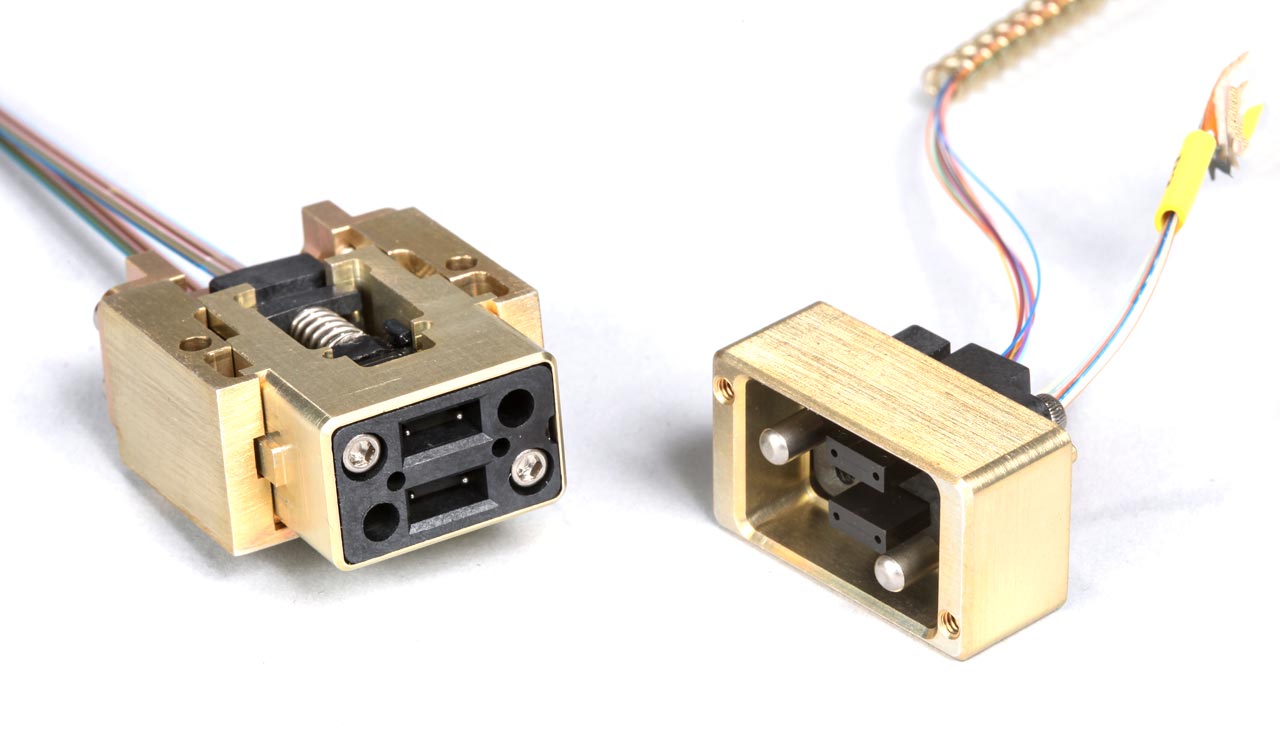 VITA66 はVPX プラットフォームに対応した光コネクタで、ドータカードおよびバックプレーンに搭載することでカード間の光通信を実現します。VITA46/48、60 により規格化されているVPX コネクタと同一基板に実装して使用できるよう嵌合高さが調整されています。