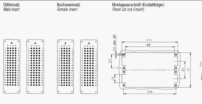 | インサート挿抜力 | DIN EN 60512-13-2, Test 13b / IEC 60512-13-2, Test 13b | 200-300 N |