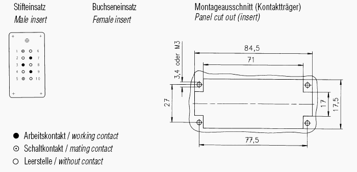 heavy|mate® - C146 HvE ねじ止め式、6+PE+2(接触遅延コンタクト)、メスインサート、ケーブル保護機能付き | ||
