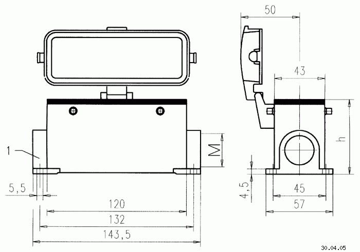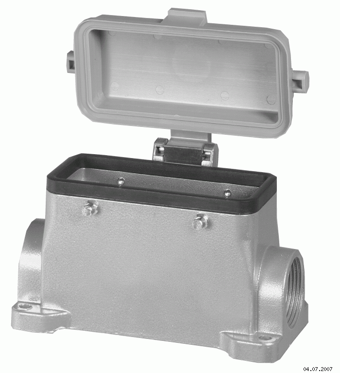 heavy|mate® - C146 ハウジング、 ばね式カバー付き、 ダブルサイドエントリー、 スタッドなし、 h = 80 | ||