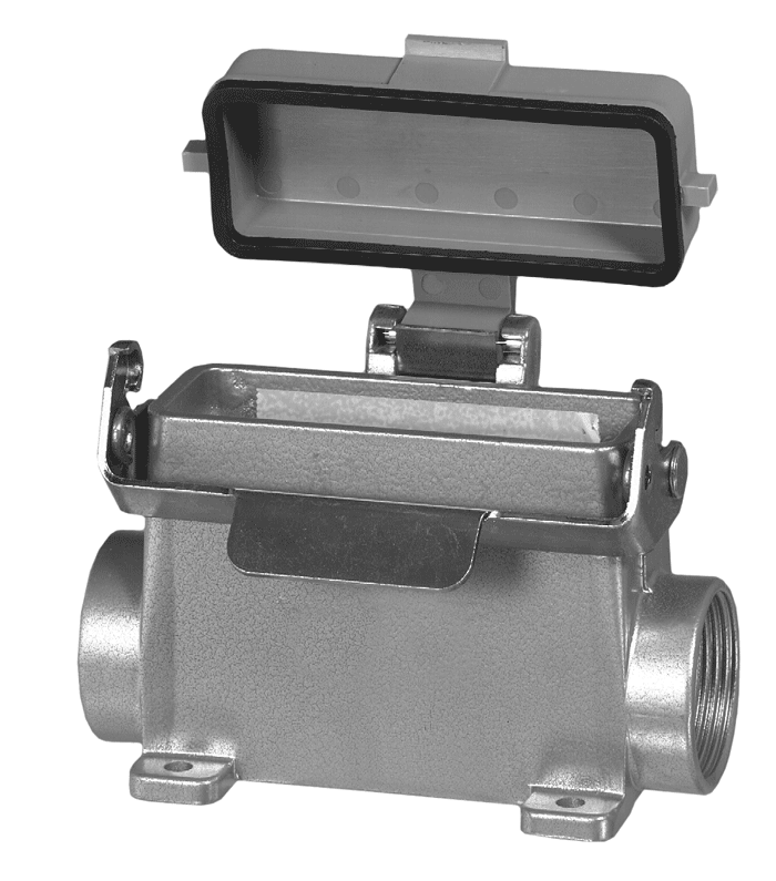 heavy|mate® - C146 ハウジング、 ばね式カバー付き、 ダブルサイドエントリー (右 + 底) | ||