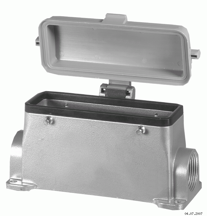 heavy|mate® - C146 ハウジング、 ばね式カバー付き、 ダブルサイドエントリー、 スタッドなし、 h = 64 | ||