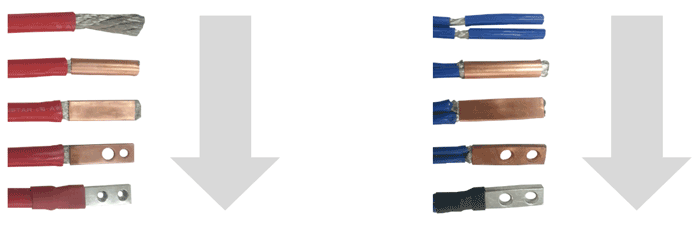 電気特性、信頼性、コストの最適化が必要とされる用途において、パワーラグは、従来の丸端子結線を代替する理想的なソリューションです。単芯ケーブル、複合ケーブル、スプライス、ブレイドタイプなど、お客様の要求仕様に応じて多彩な結線、終端加工を提供します。