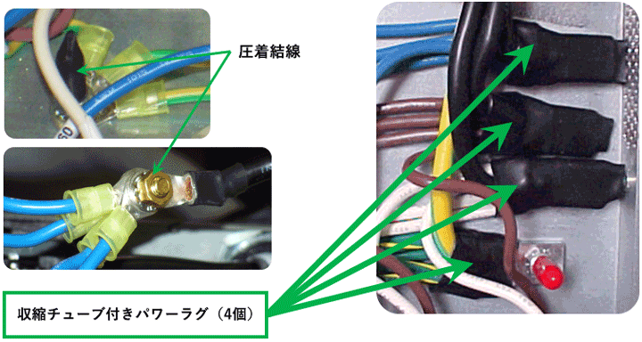 16の圧着結線と6つのねじ止めを、4つのパワーラグに置き換えし、効率的な配線を実現。