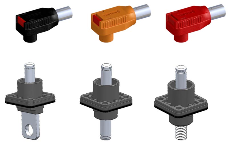 ラドロックは、最大500Aの電流を流すことができる、単芯のケーブルコネクタです。堅牢かつ安全に設計されており、ワンタッチでクイック接続できますが、独自のロック機構により不用意に離脱しません。また、アンフェノールのRADSOK®技術を使っており、大電流をコンパクトなサイズで流せます。