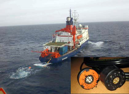 海洋石油探査は、得られるデータ量が膨大なため、一般的に光ファイバ接続を含むストリーマアレーを使用します。このようなストリーマの多くが、電気信号と光信号の複合インサートを使ったハイブリッド(電気と光ファイバ)接続を必要とします(図5参照)。