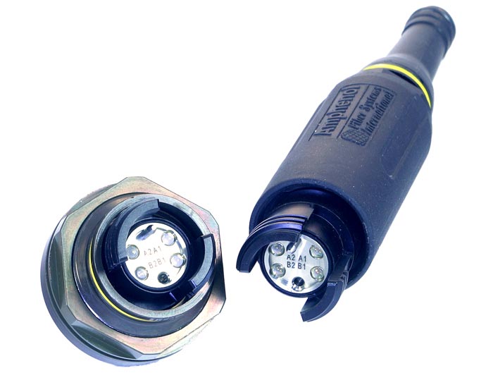 このコネクタは、マルチモードのみで使える雌雄同形のデザインにおいて、やや旧式の双円錐形光端子をベースにした技術を特長としています。もともと、この技術は、電気通信の分野で使用されていましたが、戦場における戦術通信のアプリケーションに用途が広がりました。