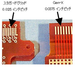 Gen-X LRMはより高密度な0.075インチ×0.06インチピッチでコンタクトが配置され、モジュール基板の配線ピッチは0.0375インチになります。