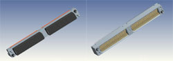 - MIL-C-28859,MIL-C-28754適合のフォーク&ブレイドコンタクトを0.10ピッチで組み込んだメタルハウジングのコネクタです。ドータカードへの実装方式やピン配置を自由にデザインできるため、マザーボードへのあらゆる接続をこのコネクタで実現できます。
