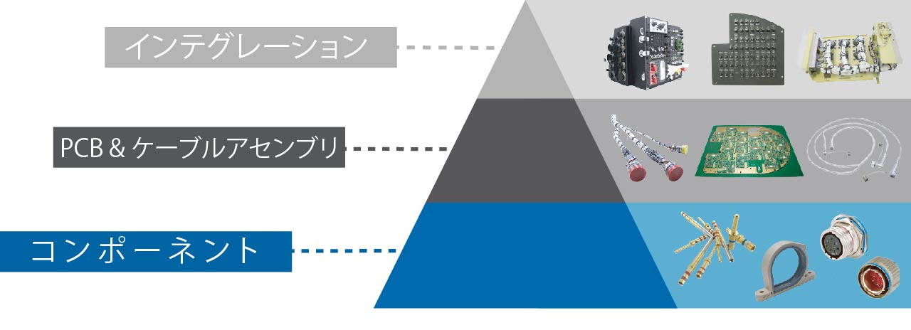 航空宇宙・防衛向けのバックプレーンアセンブリ、フレキ基板、リジッドフレキ基板、基板コネクタなどの技術力を結集し、お客様の要求を最適化したターンキーソリューションを提供しています。