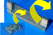 またモジュール側コネクタのコンタクト屈曲部(ライトアングル部)を樹脂モールドすることで、取り扱い時の不慮のピン曲がりを防ぎます。